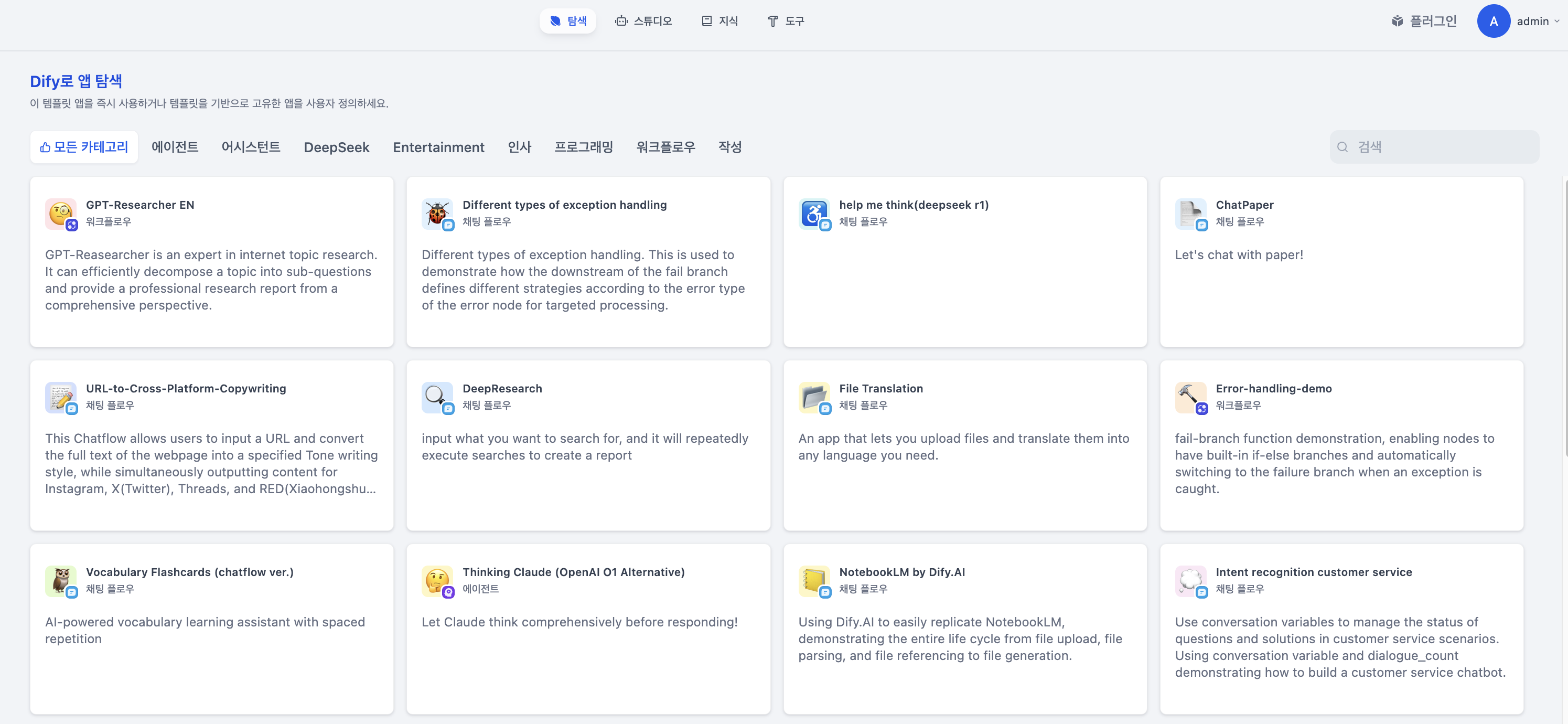 2. Dify  살펴보기, 스튜디오 (템플릿으로 시작)