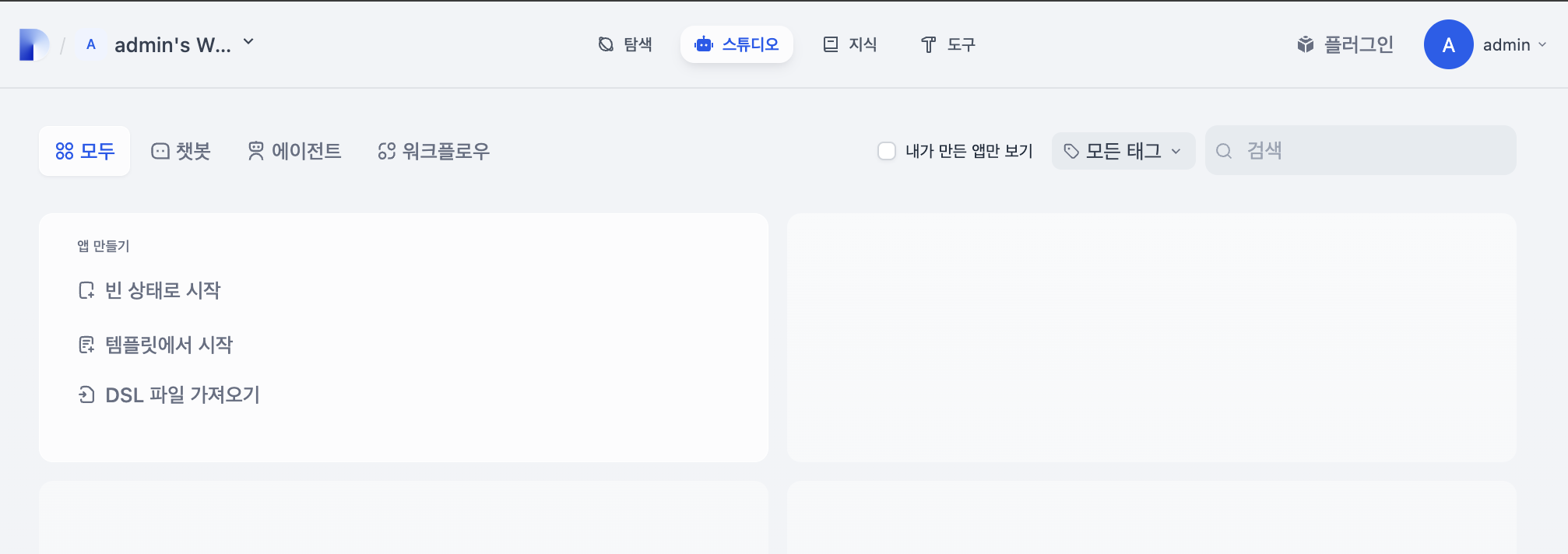 1. Dify  살펴보기,  스튜디오 (빈 상태로 시작)