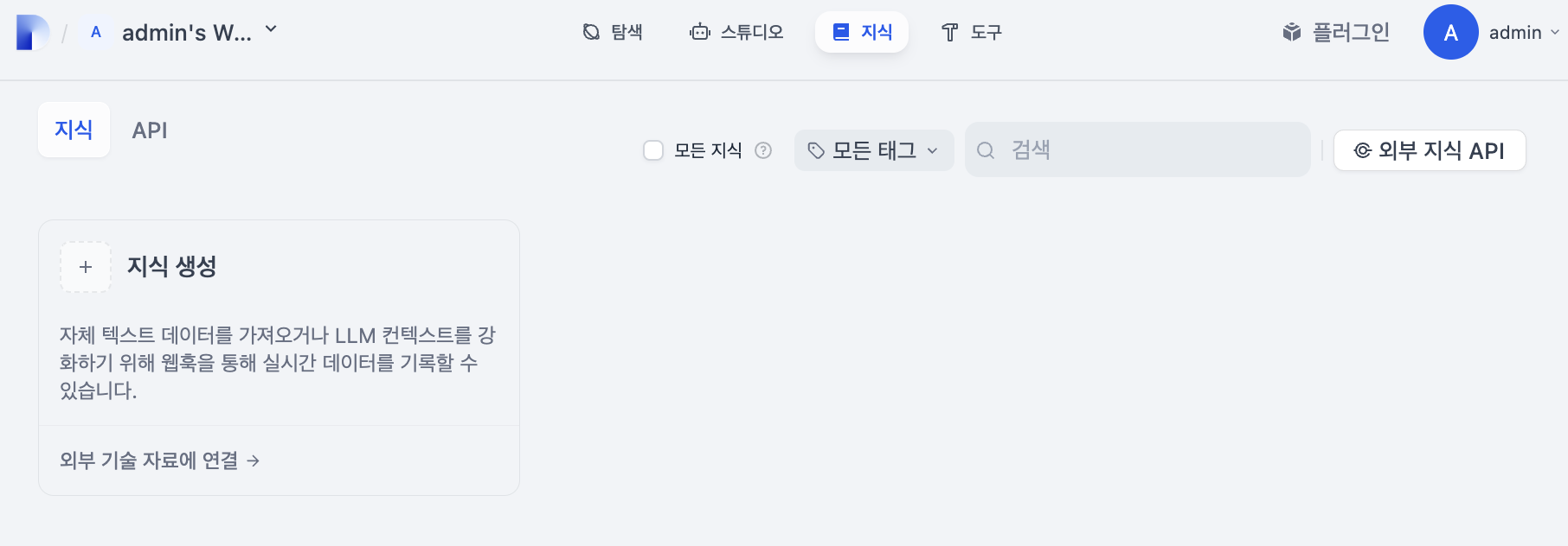 지식 탭에서는 아까 LLM 어플리케이션을 빈 상태로 시작할때, "컨텍스트" 부분에서 추가하는 부분이다.