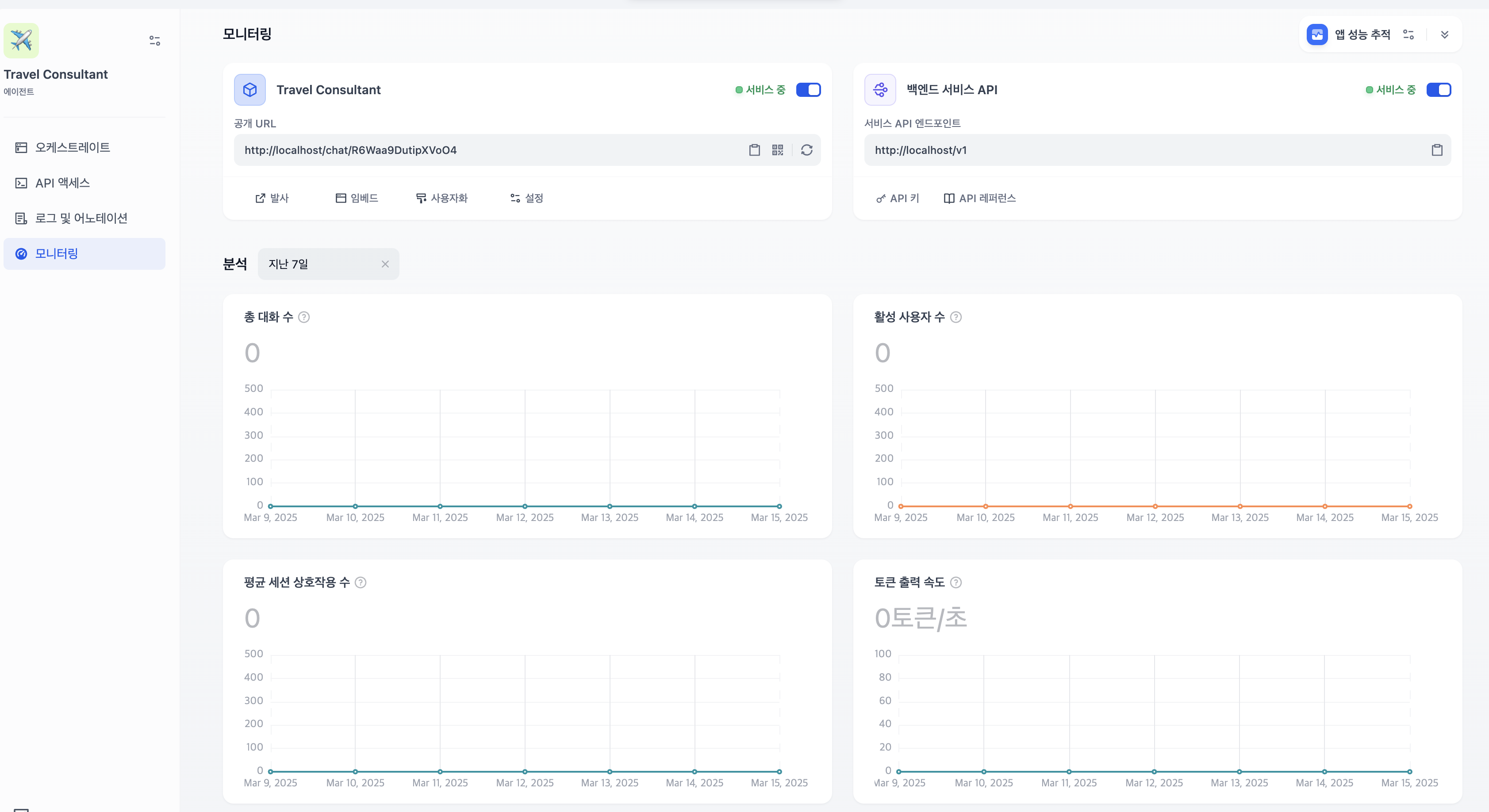총 대화수와 활성사용자수, 세션과 토큰속도 등 까지 생각보다 많은 정보를 모니터링할수 있다.