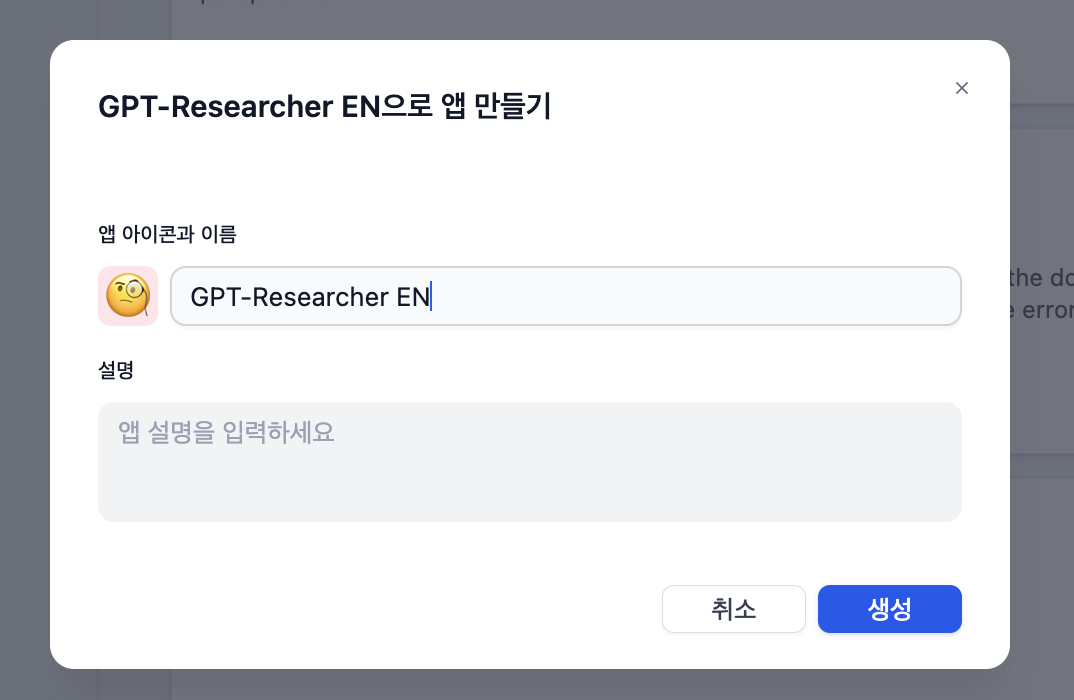 예를 들어, <GPT-Researcher EN> 이란 템플릿을 선택한다면,