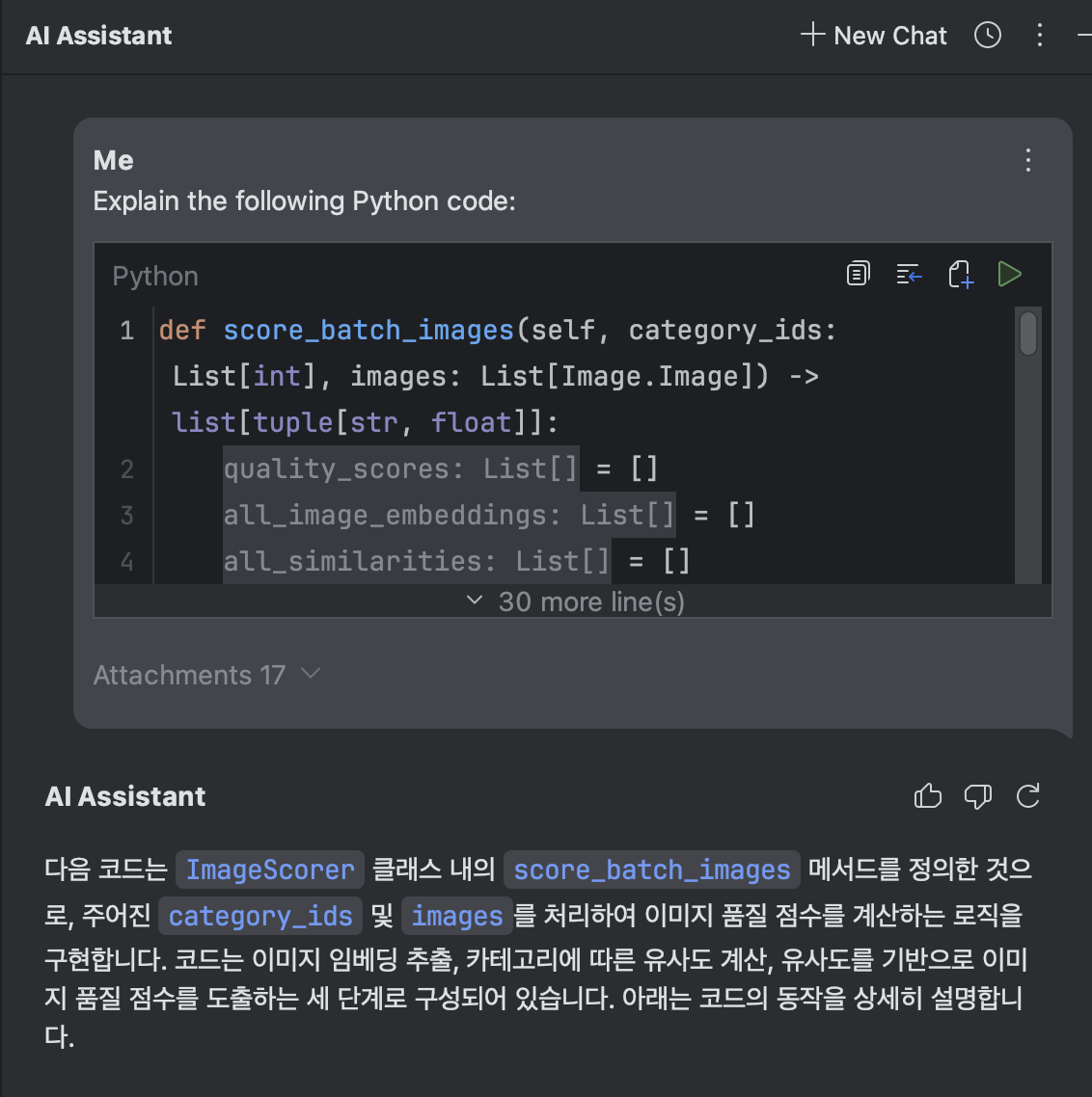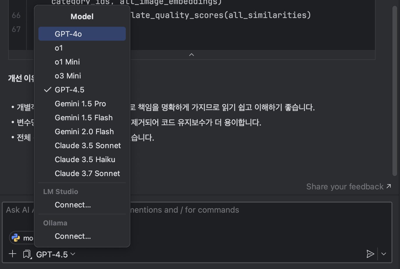 마지막으로, 추가적으로 AI Assistant가 사용하는 모델을 선택할수도 있다.