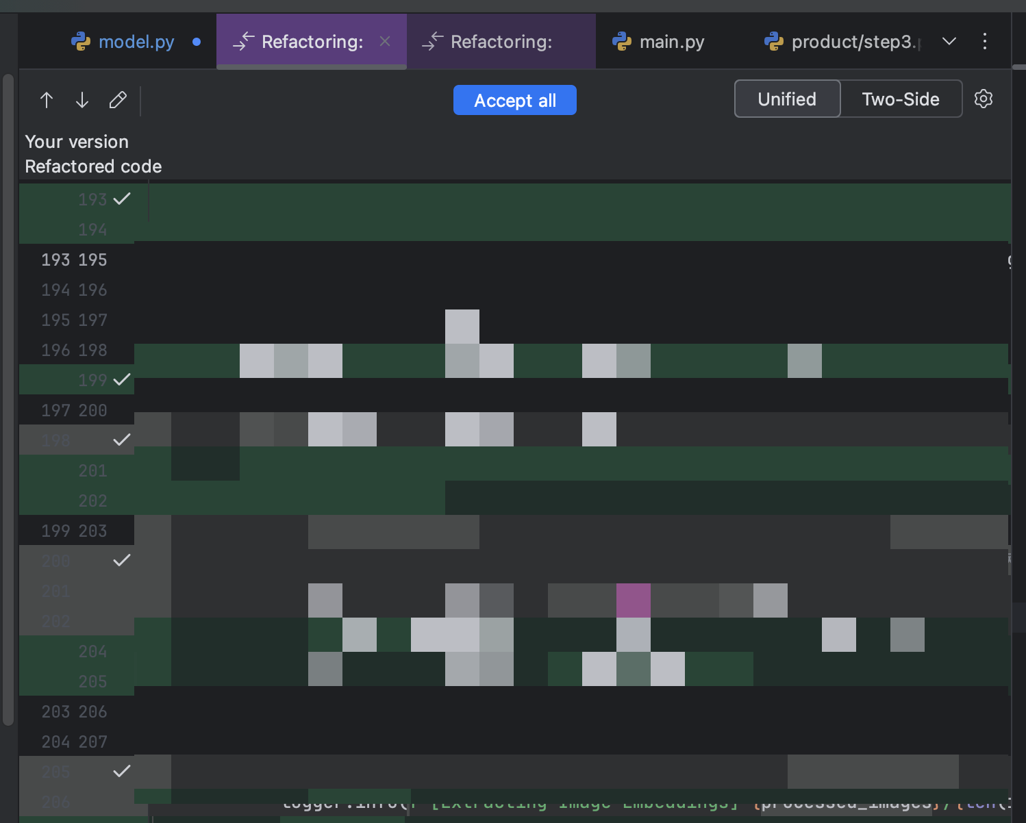Show DIff를 누르면, 마치 git처럼 변경된 부분이 나타나고, 원하는 부분만 적용하거나 전체를 적용할수도 있다.