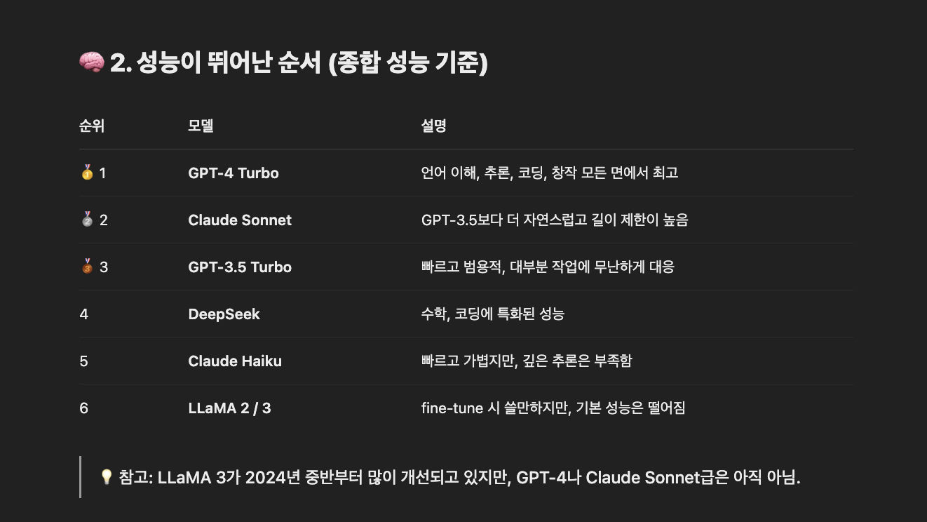 그리고 최근에 LLaMA 3 버전이 많이 개선되었는지, 두번째고 비용이 저렴하고 성능도 뛰어났다.
