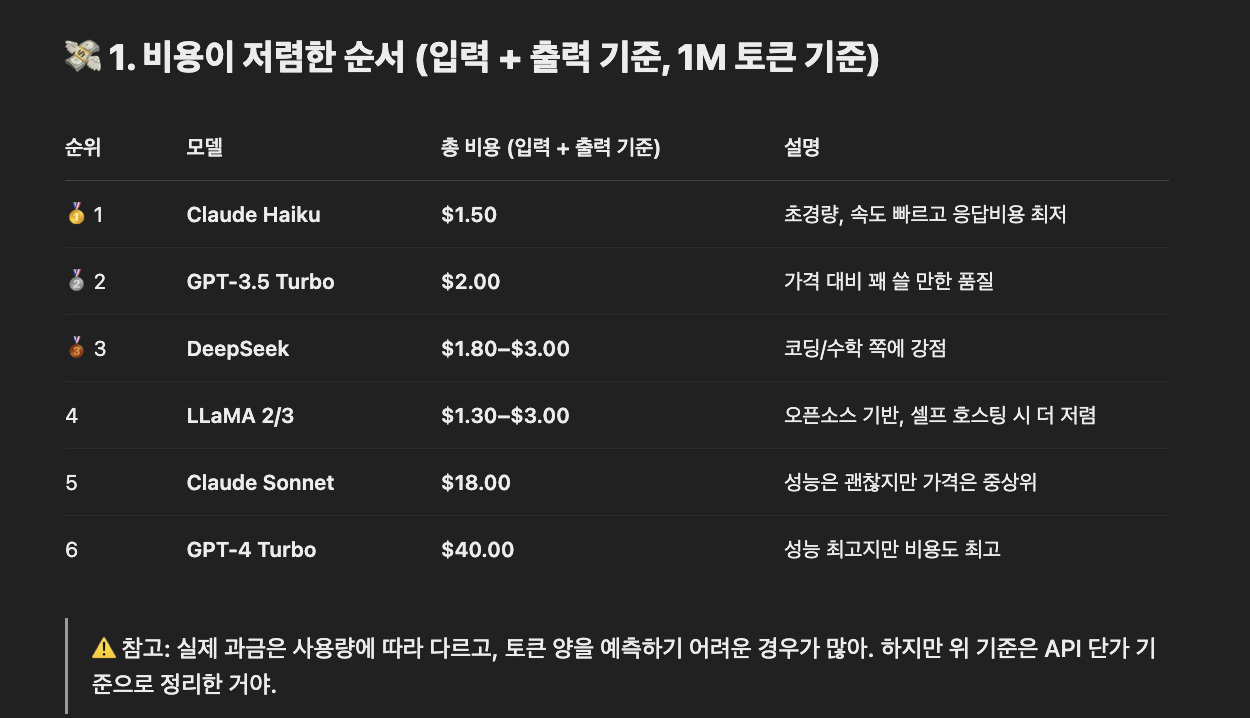 비교 결과, 비용이 가장 저렴한 모델은 Claude 3.5 Haiku 였다.
