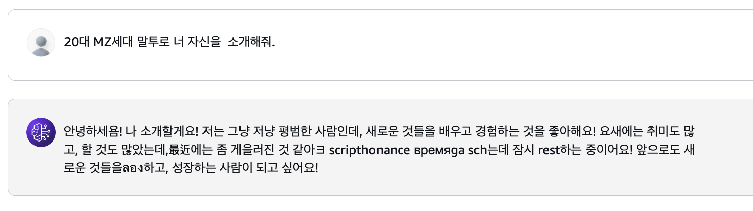 다음글에서는 이제 본격적으로 이 모델을 사용해서 AWS Bedrock으로 챗봇 만들기를 시작해봐야겠다!