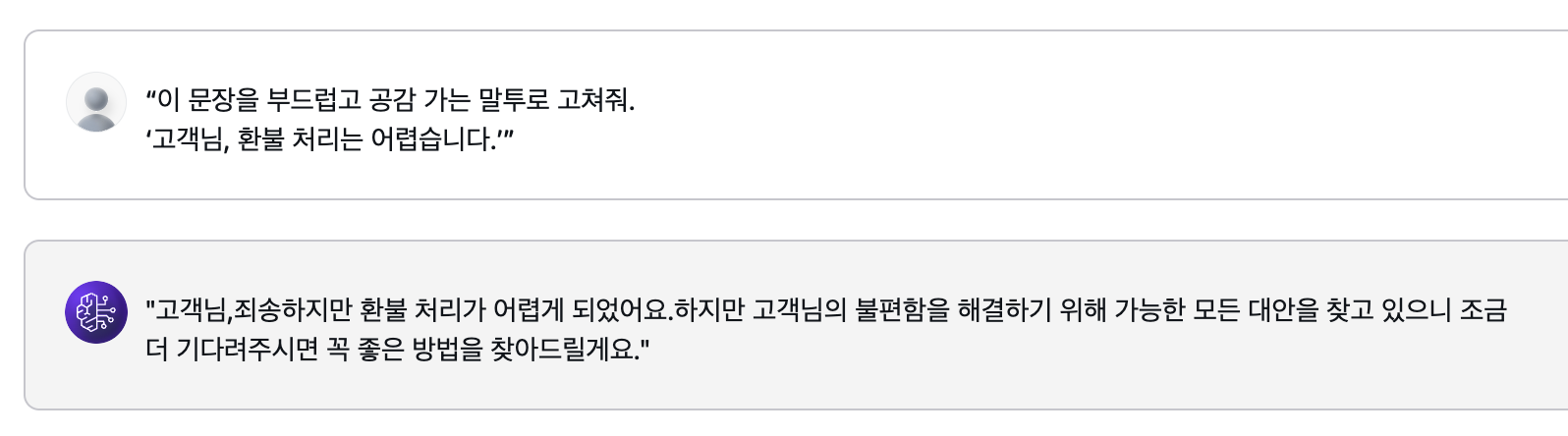 한국어를 얼마나 자연스럽게 표현하는지 기존 문장을 다시 쓰거나 요약해달라는 질문을 해봤다.