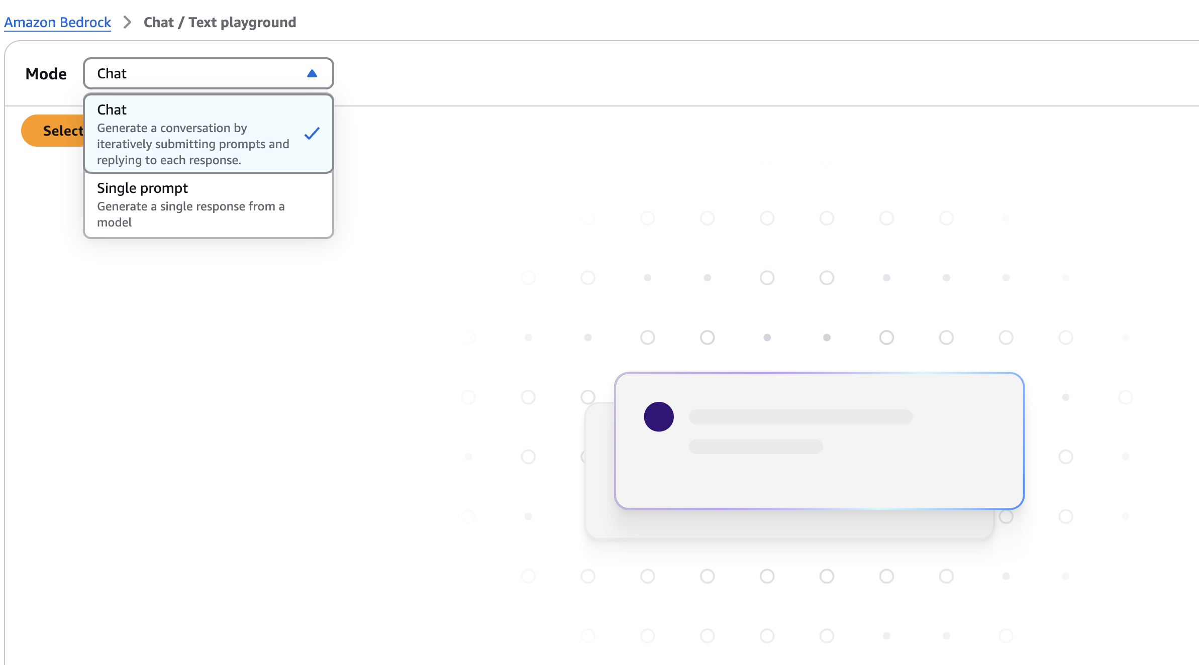 [Chat/Text] 를 선택한후, 내가 사용하기로 한 모델을 선택하기 위해 [Select Model]을 누른다.