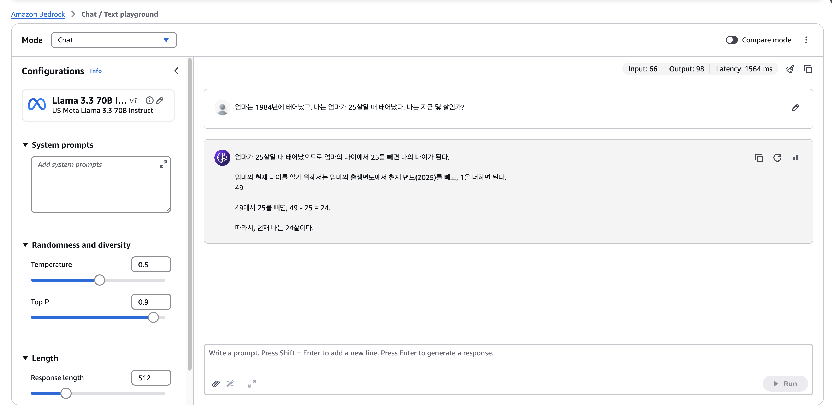 이 글에서는 Llama 3.3 70B 모델을 AWS Bedrock의 PlayGround에서 테스트해본 과정을 담고 있다.