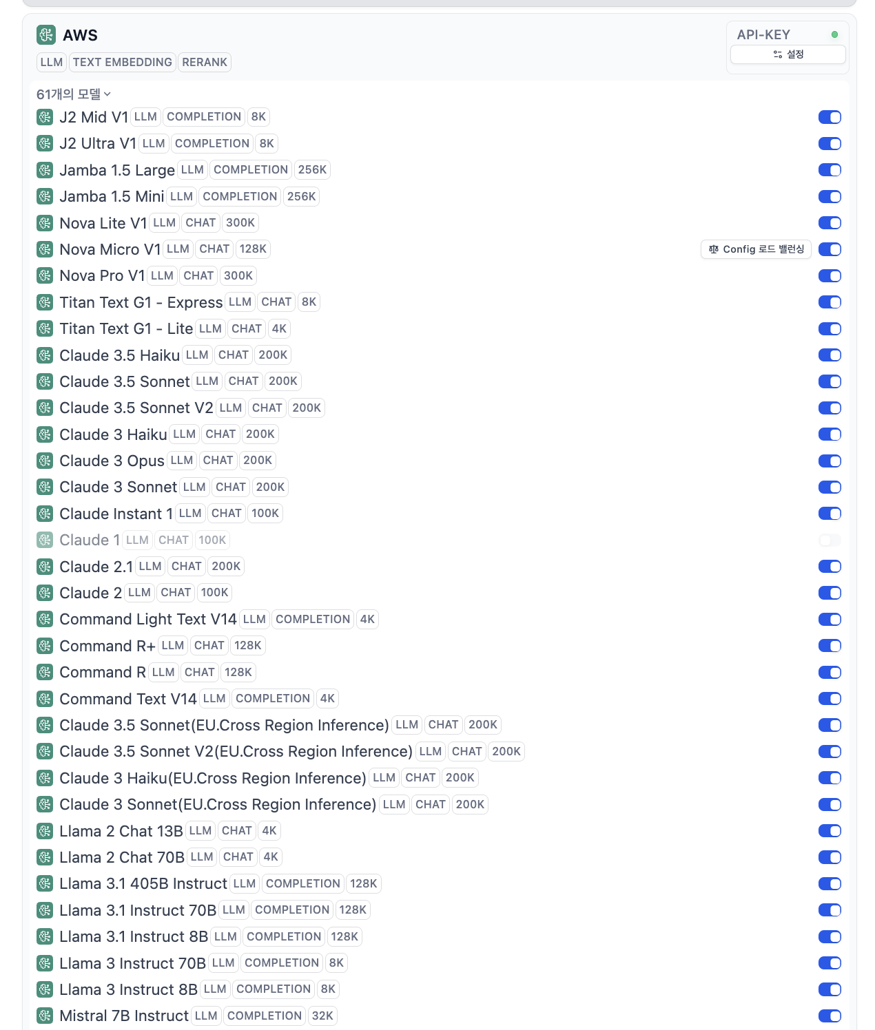 결국 dify에서 사용할 Bedrock 모델을 기입하기 위해서는