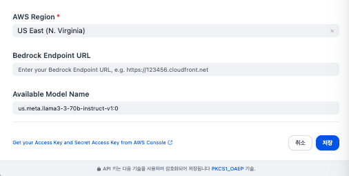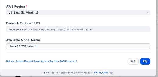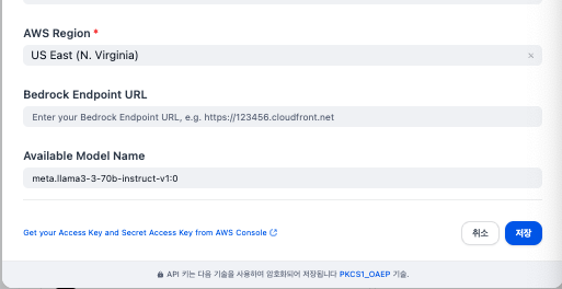 아 그리고 사용할 Bedrock의 "리전"도 기입해야한다.