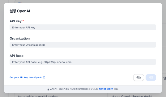 그래서 구성예정 모델에 익숙한 모델들이 먼저 보이는데, 여기에서 api-key를 등록해주면 된다!