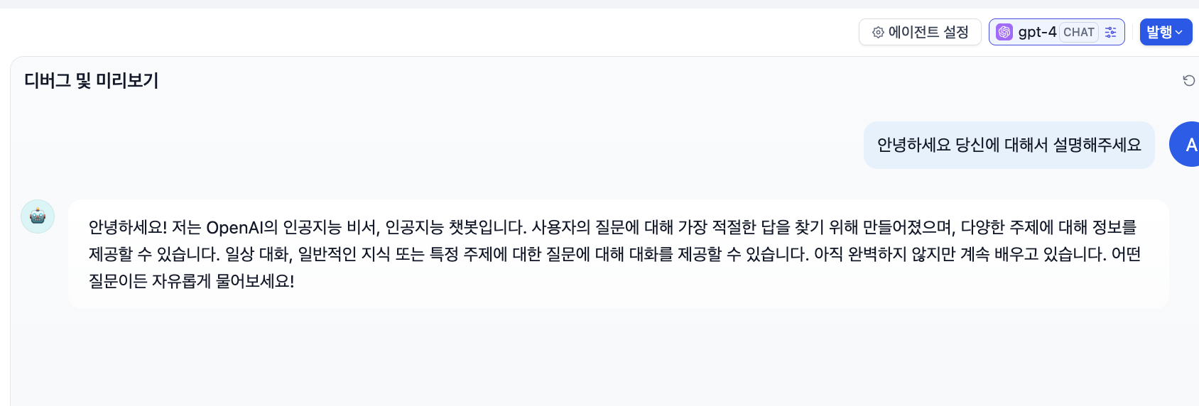 모델 제공자 관련 설정을 완료하기만 해도, 이렇게 디버그 및 미리보기로 확인해볼수 있다.