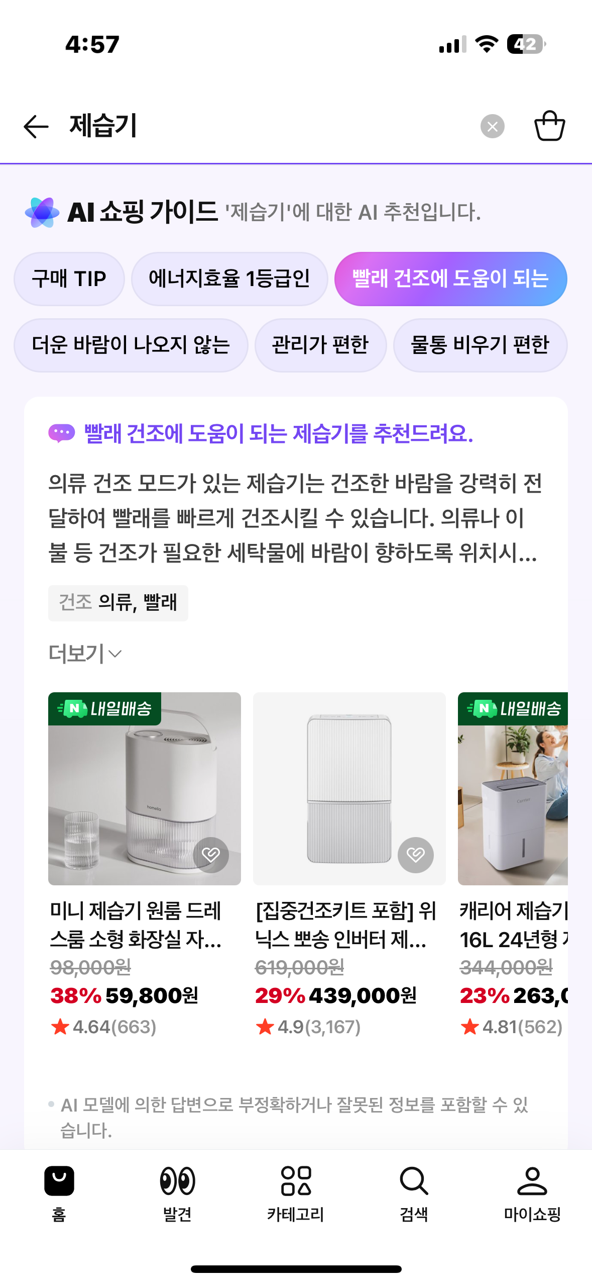 예를 들어, 제습기를 검색했다면