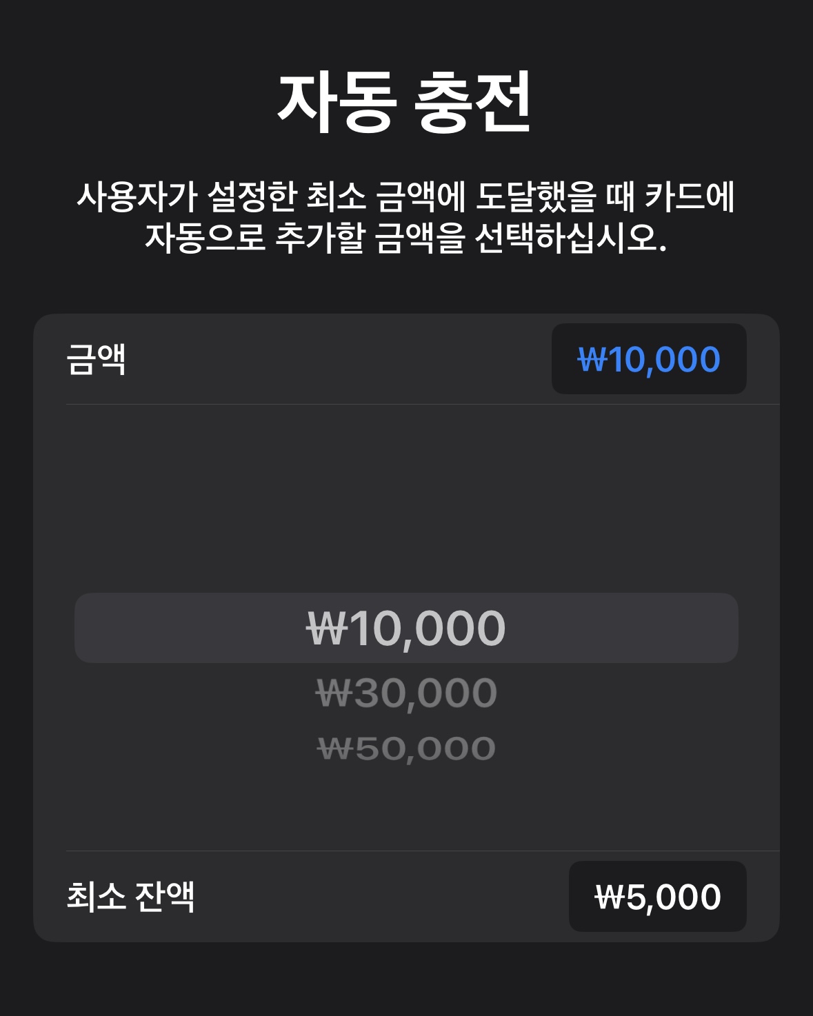 잔액부족시에 자동 충전 기능도 있는게 좋은것 같다.