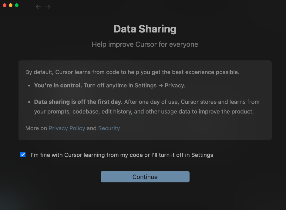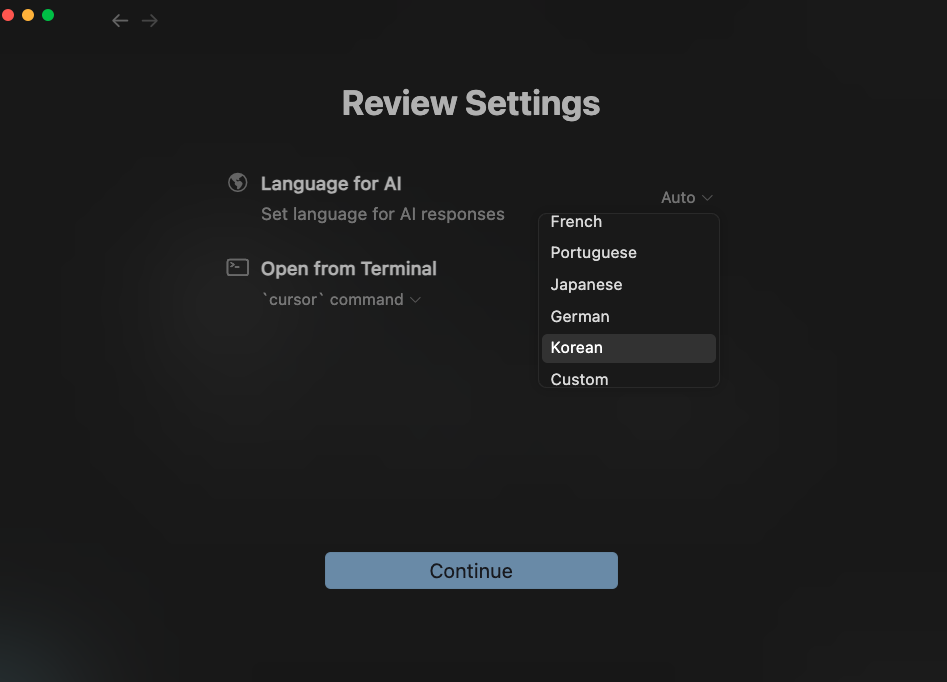 그러면 이제 CursorAI에 대한 기본 설치는 모두 완료!