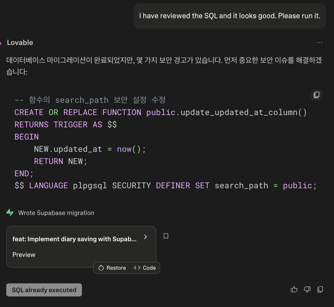 다음날(크레딧이슈)lovable에서 바로 구현해달라고 했다. 그리고 여기까지 구현된 내용을 다시 깃으로 연동시켰다.