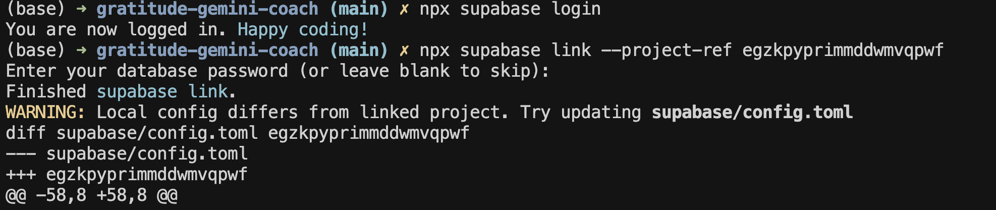 3. supabase 프로젝트 연결 npx supabase link --project-ref "project명"