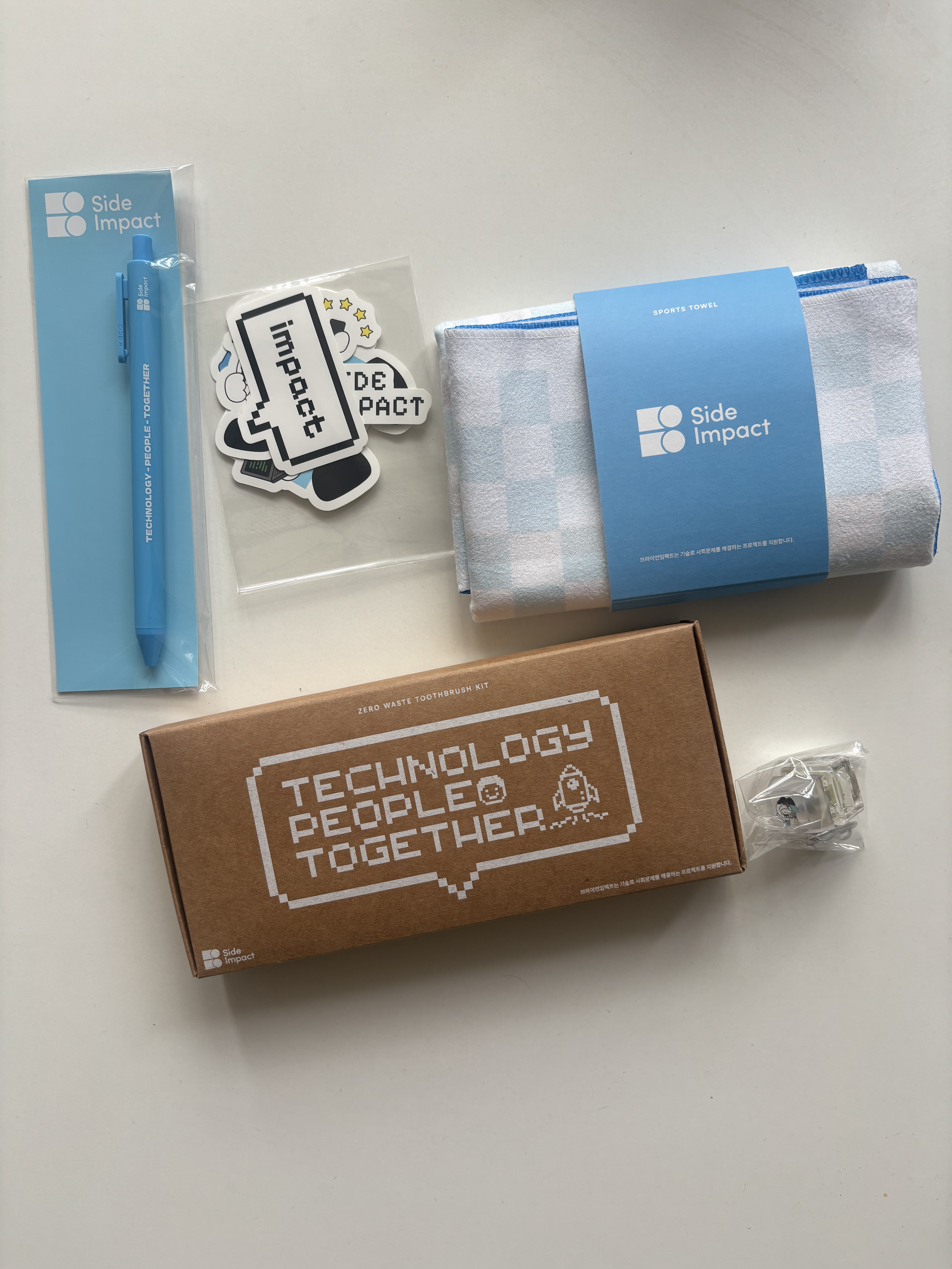 사이드 임팩트 굿즈가 꽤 귀엽고 마음에 들어요! 심지어 대나무 칫솔과 치약이 특이해서 인상적이네요ㅋㅋㅋ