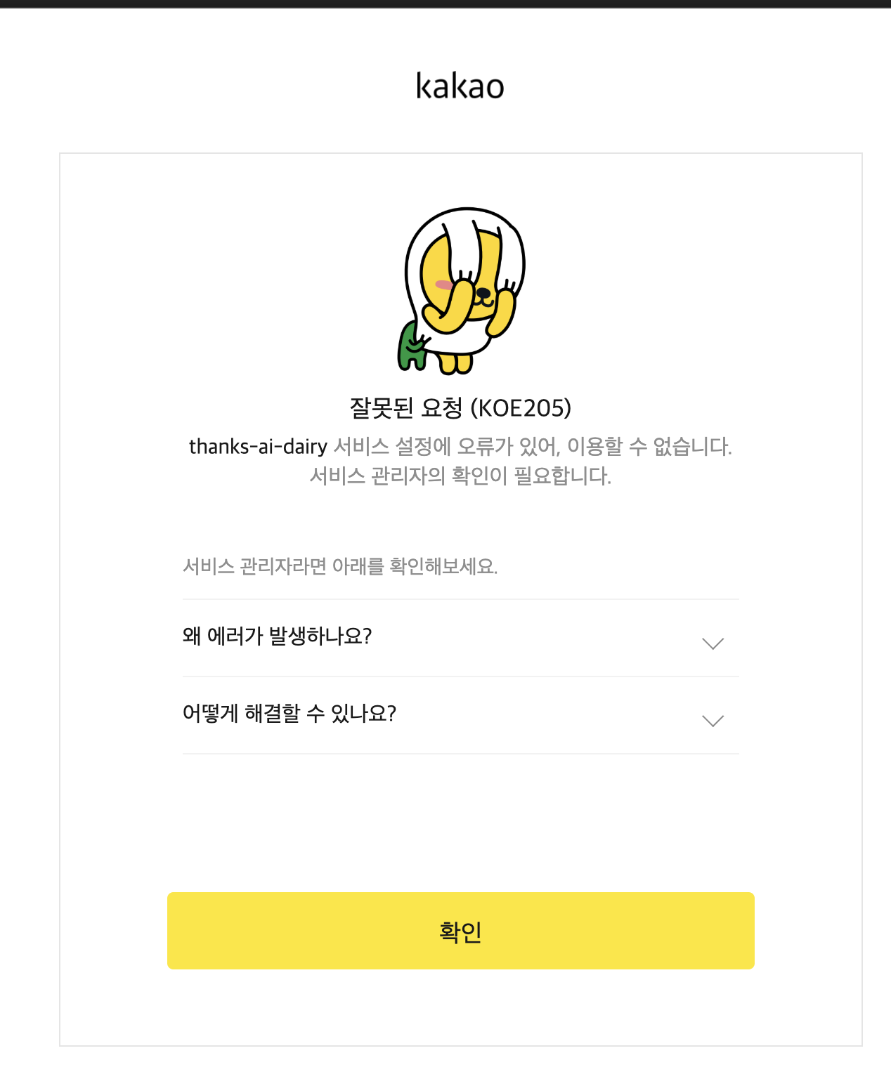 아까와 같이 잘못된 요청 (KOE205)이라는 에러는 안나왔지만, 계속해서 로그인에 실패하고 있었다....