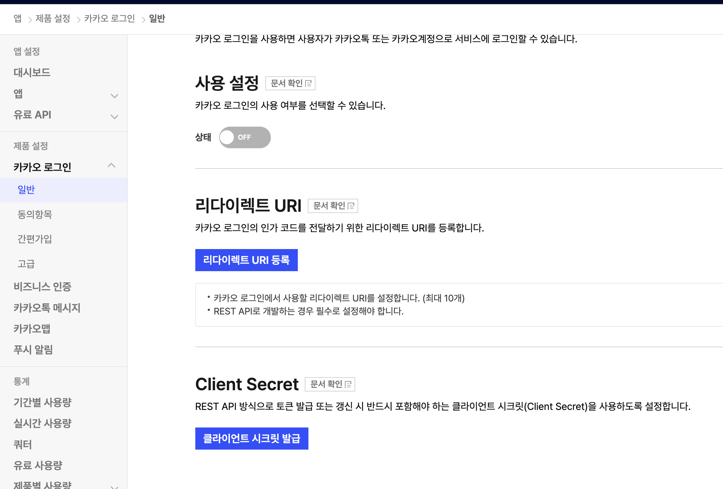 - Client Secret Code: 카카오에서 발급받아서 입력필요