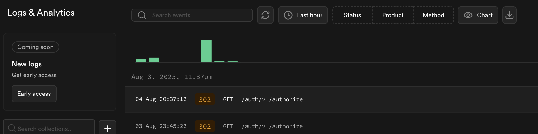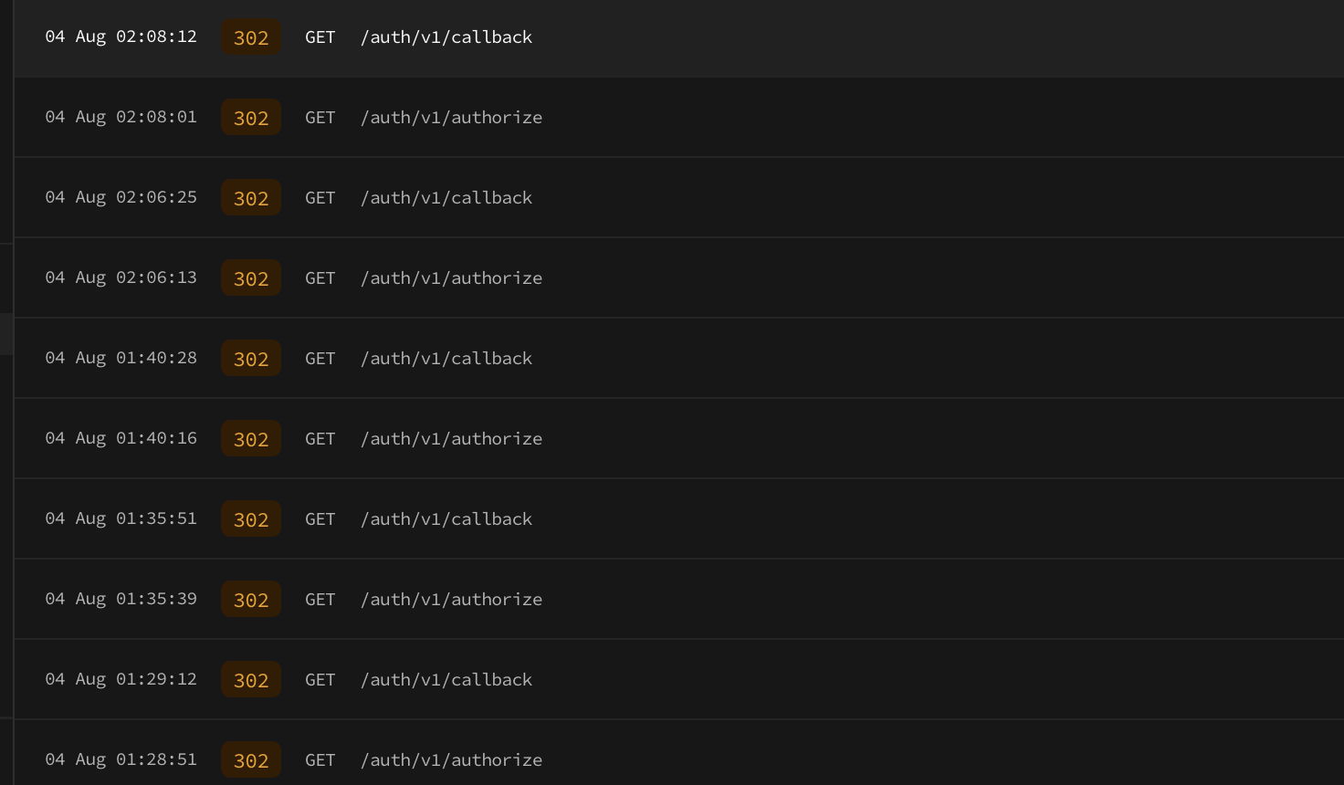 Supabase 대시보드의 Authentication > Logs에서 로그인 시도 로깅을 확인해봤다.