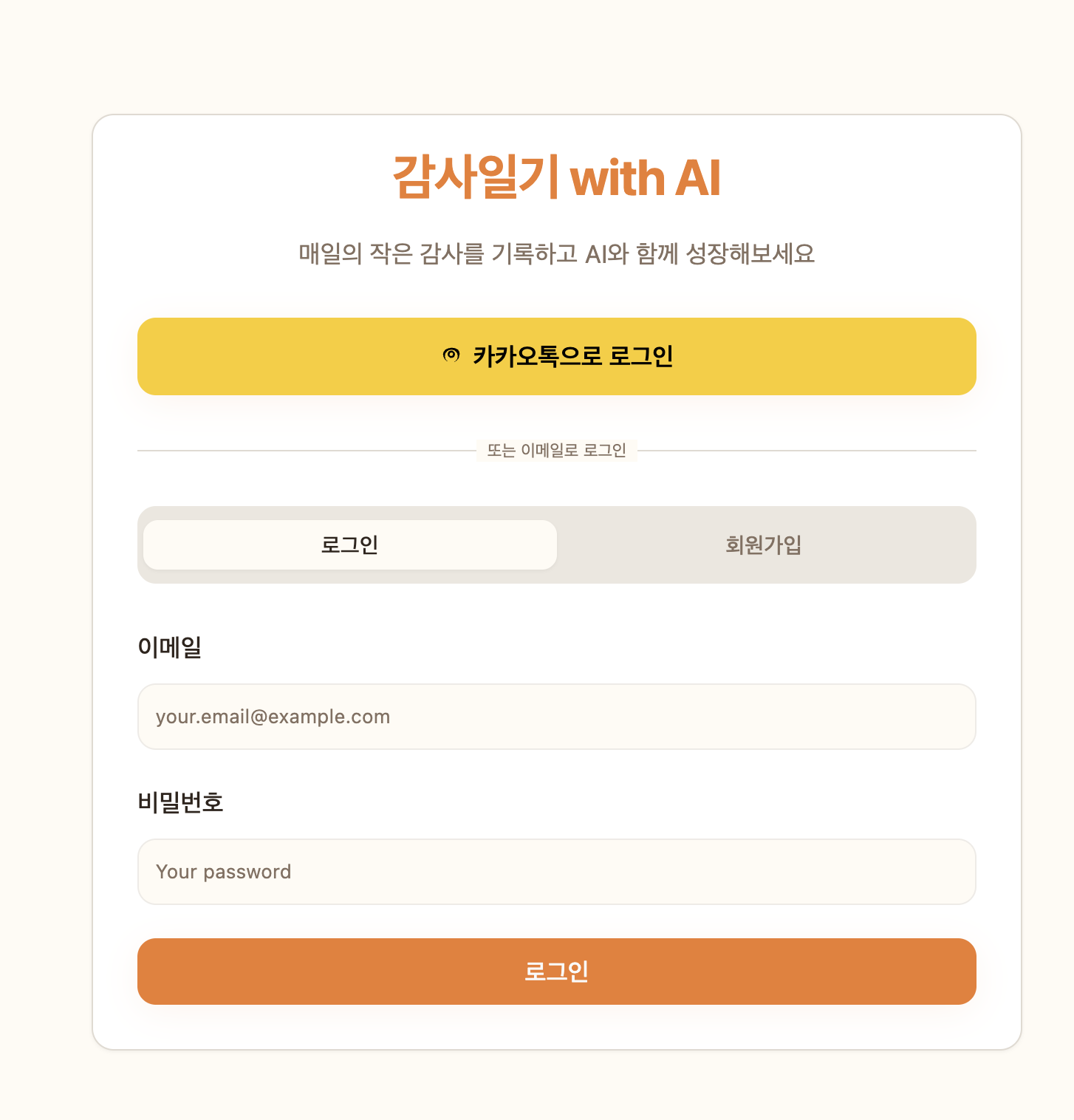 카카오 부분을 누르면, 이렇게 3개의 입력창이 보인다.