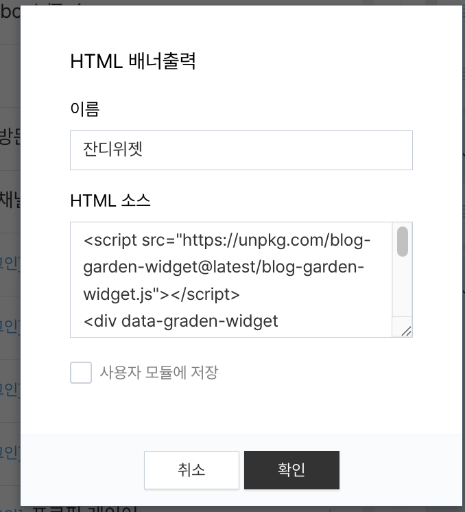 여담이지만 처음엔 잔디 스타일만 생각해서 이름을 blog-garden-widget이라고 지정했다...