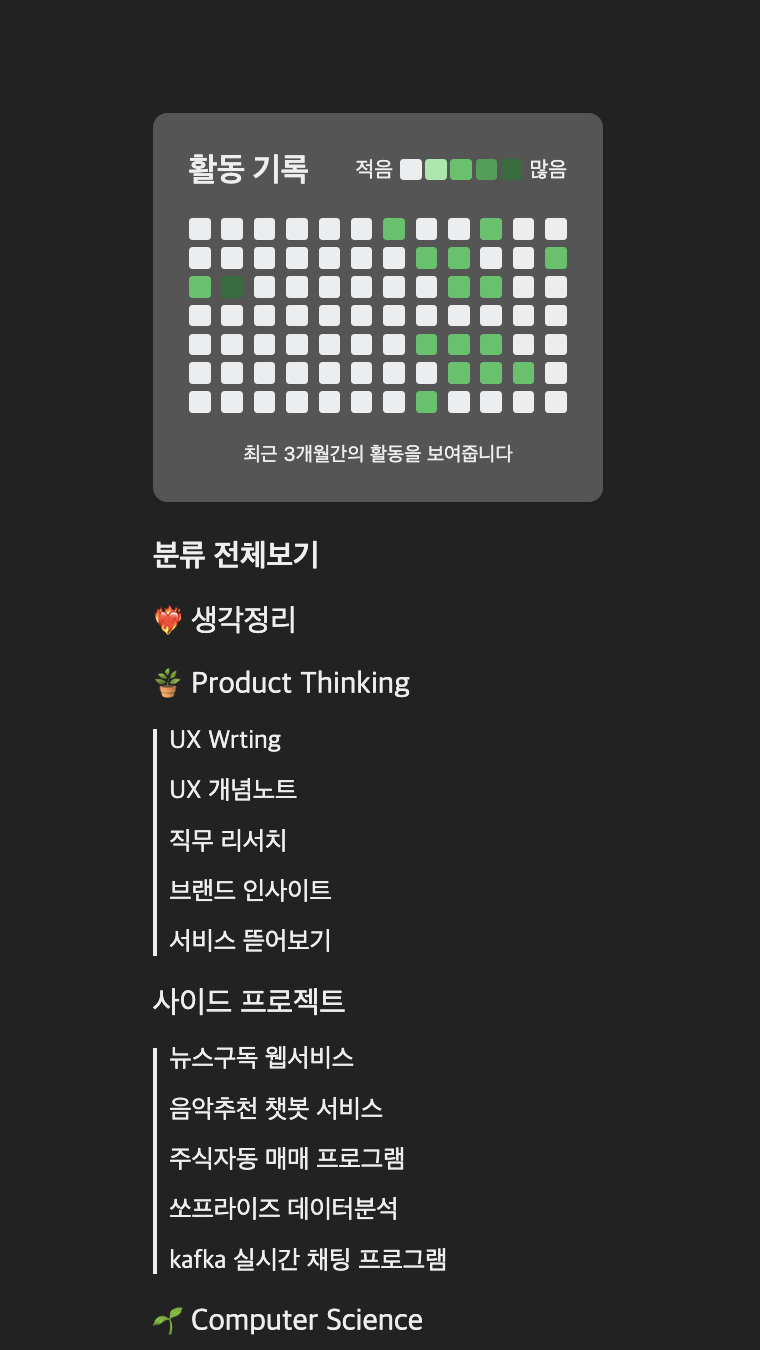 3. 어떻게 풀것인가? 깃허브 잔디처럼 게시글 수를 시각화해서 블로그 위젯으로 제공해준다.