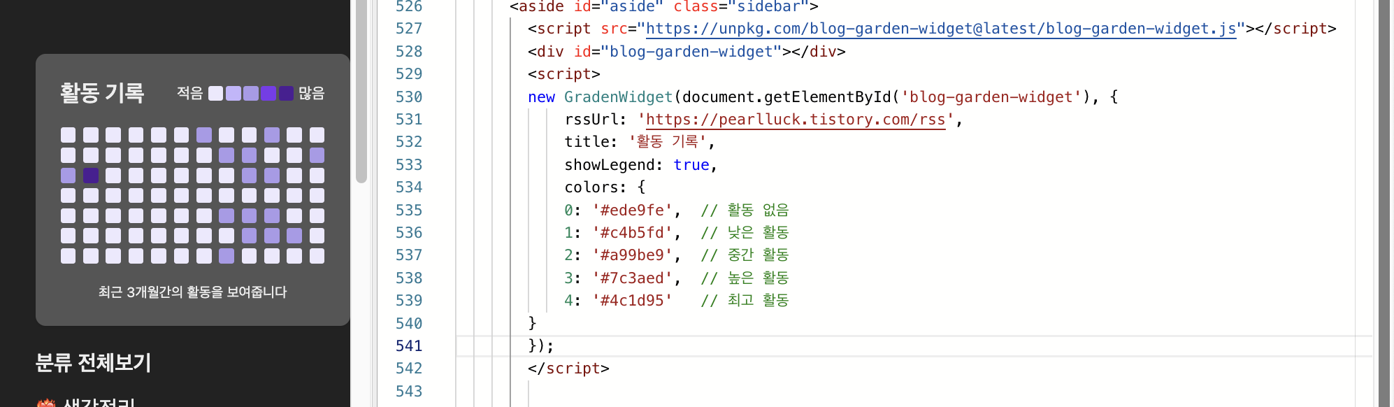 Blog Activity Widget 테스트 - 내 블로그에 위젯 적용하기